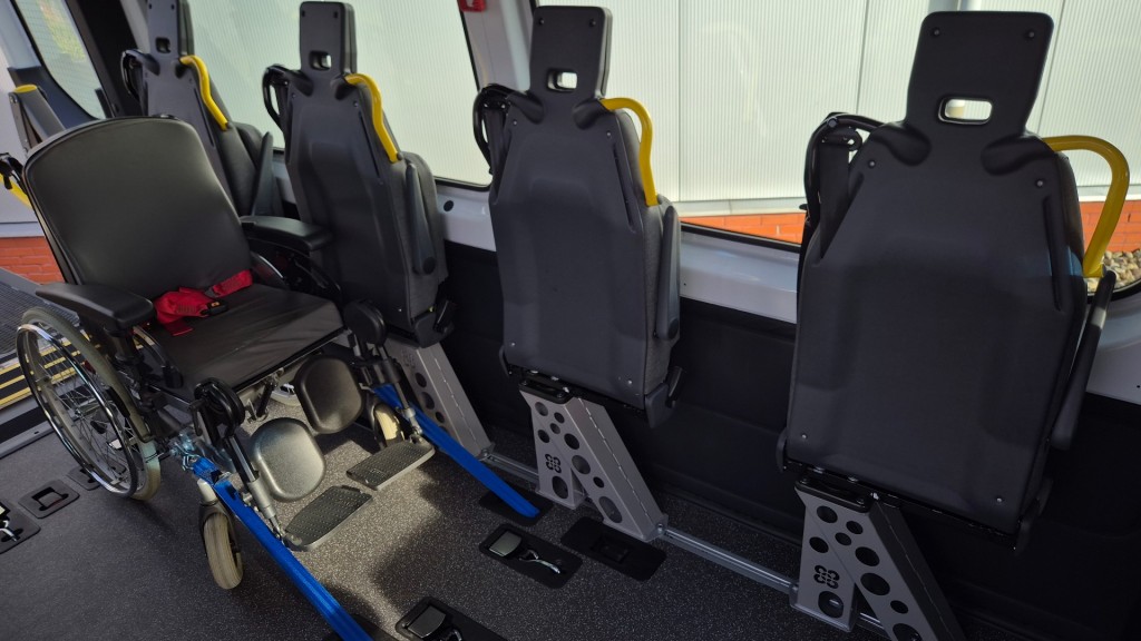 ✅ 4 integrierte Rollstuhlrückhaltesysteme im Boden, mit äußerst leichter Handhabung.